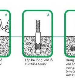 Gắn bu lông nở vào máy bắn hoặc dụng cụ hỗ trợ rút lõi sau đó gắn vào lỗ vừa khoan sau đó rút lõi để làm bung áo nở