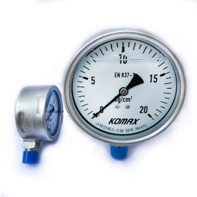 Đồng hồ áp lực mặt dầu Komax D63 – D100 là sản phẩm chuyên dụng cho việc kiểm tra áp lực hệ thống đường ống áp lực cao như hệ thống thủy lực , hệ thống khí nén lò hơi , các đường ống cấp hơi gas xăng dầu áp lực cao . Đồng hồ áp lực mặt dầu Komax D63 có nhiều ưu điểm như